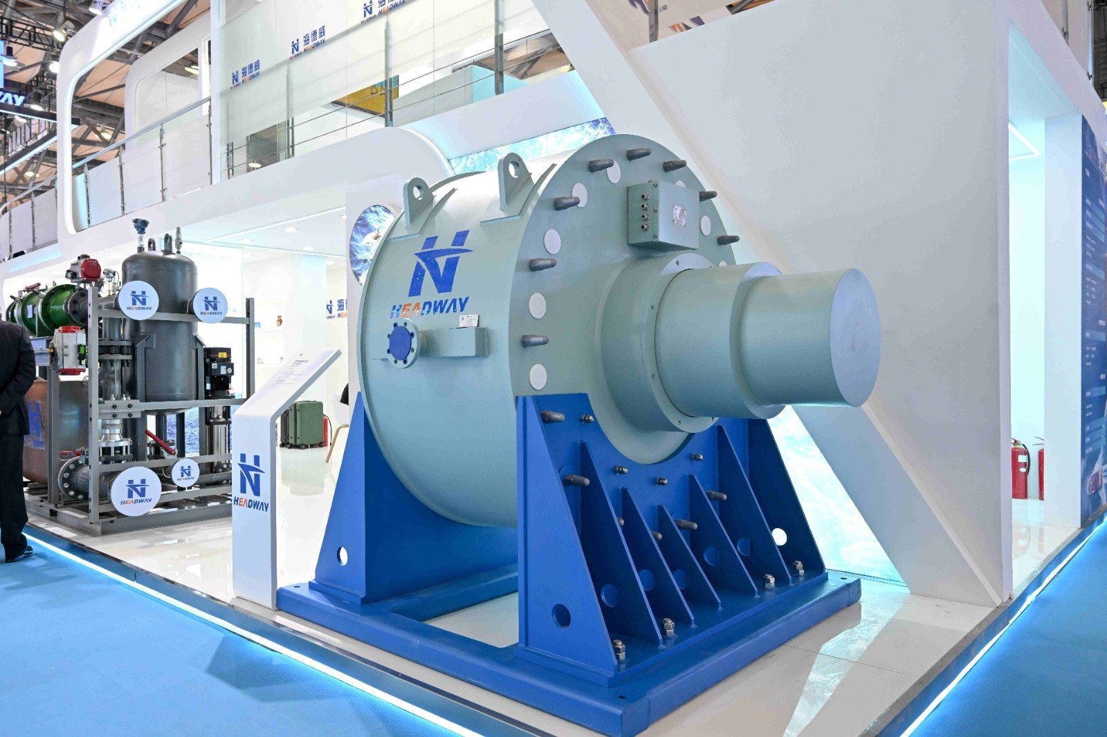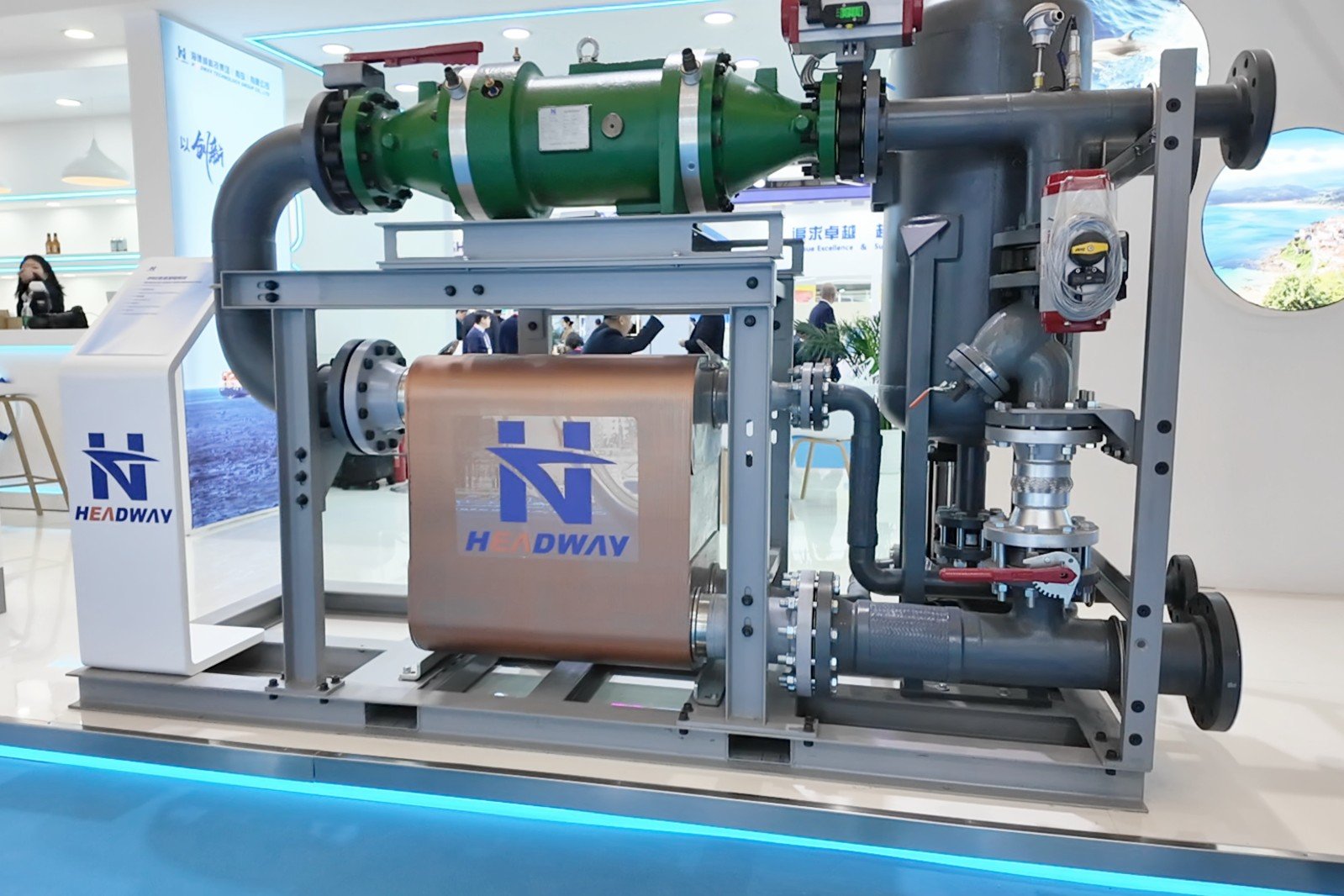 本屆展會,海德威科技集中呈現(xiàn)了一系列最新自主研發(fā)的低碳航運(yùn)和能效提升解決方案,涵蓋船舶ORC廢熱發(fā)電系統(tǒng)、船載碳捕集系統(tǒng)(OCCS)、替代燃料(甲醇/氨/LNG)供給系統(tǒng)、燃料閥組單元(FVU)、船舶尾氣脫硫系統(tǒng)(EGCS)、新型軸帶發(fā)電機(jī)系統(tǒng)、智慧船舶系統(tǒng)及制氫儲氫供電系統(tǒng)等產(chǎn)品實(shí)物與比例復(fù)刻模型,吸引了各界嘉賓駐足交流,共同探討低碳航運(yùn)的未來發(fā)展與合作機(jī)遇。